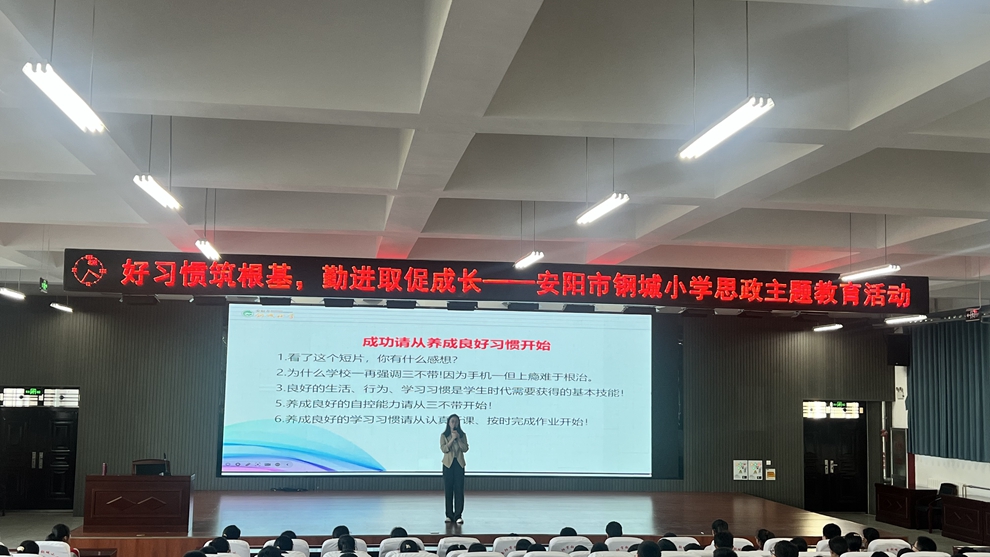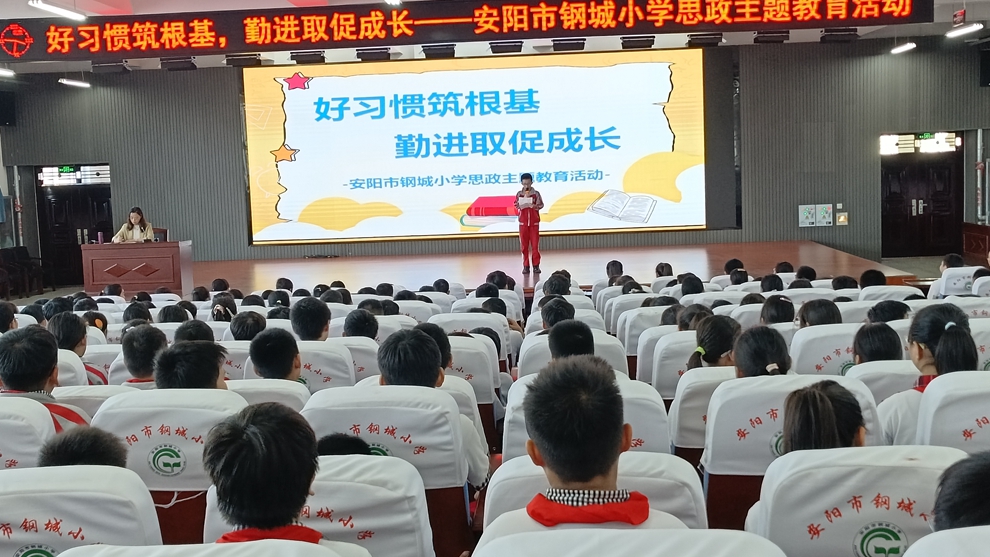 映象网讯(大象新闻记者于艳彬)近日,安阳市钢城小学在四、五年级学生中开展了“好习惯筑根基,勤进取促成长”思政主题教育活动。活动聚焦习惯养成和进取精神,各班学生风采展示、年级组长暖心建议、校领导成长寄语依次进行,引导学生从细节做起,踏实学习、勇于突破。活动有序高效,助力学生在良好习惯中稳步成长,在勤奋进取中不断提升。