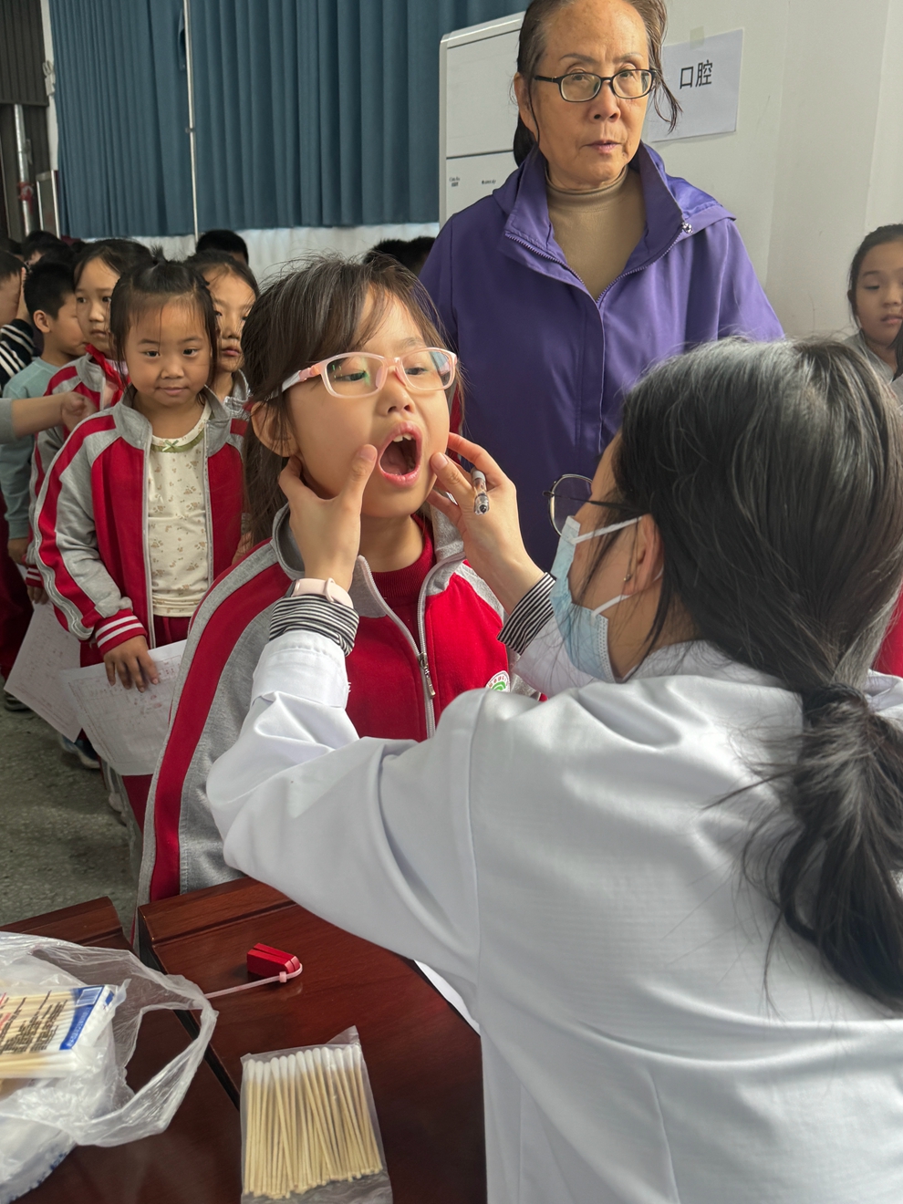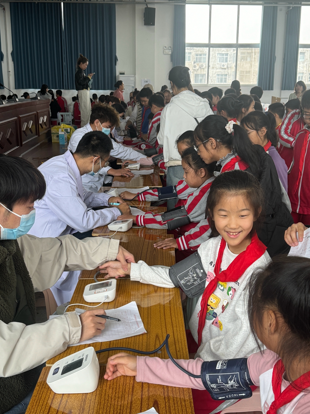在各班班主任、任课教师及家长志愿者的密切配合下,学生们按年级分批有序进行体检,现场秩序井然。医务人员认真细致地为每位学生检查,并及时记录相关数据。