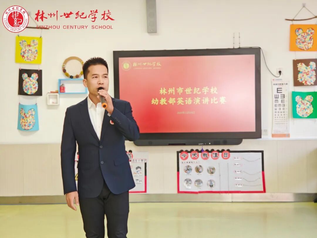 王园长在首届教师英语演讲比赛开场中表示,随着幼儿园开启幼儿英语启蒙课程,教师更应率先开口、乐于学习;并鼓励老师们以勇气为重、不惧不完美,尽情享受分享与展示的舞台,不负热爱、勇毅前行。