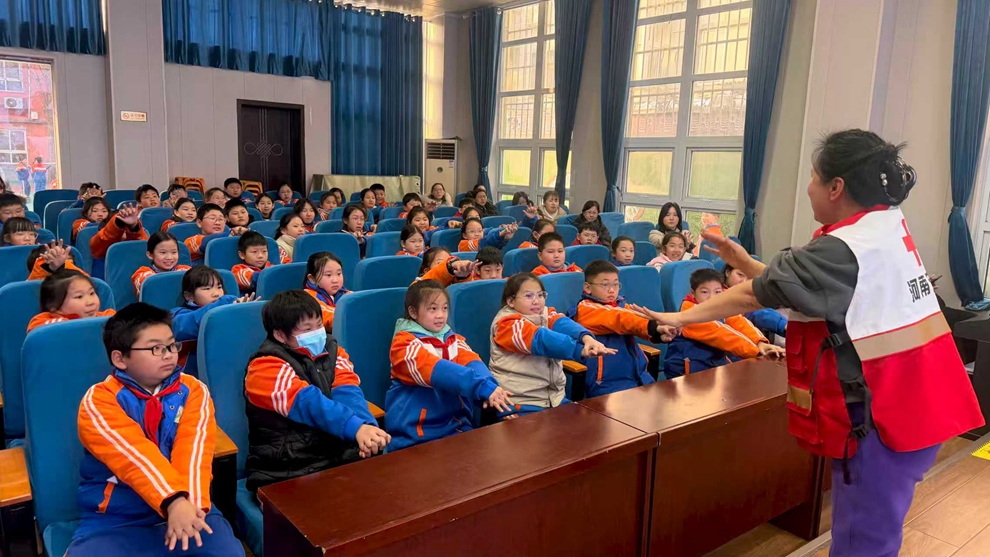 映象网讯(大象新闻记者 贾利超)为进一步增强师生应急救护意识,提升自救互救能力,安阳市梅东路小学联合安阳红十字应急救援队于2026年1月20日开展了应急救护普及培训进校园活动,培训内容包括心肺复苏、异物梗阻急救方法及卫生健康知识三大板块,学校总务处全体成员及四、五年级师生代表共计116人参加了本次培训。