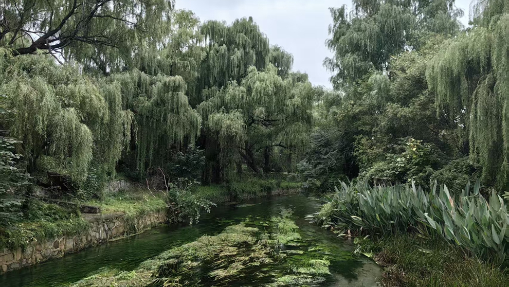 珍珠泉历史悠久,因泉水中不断涌现的气泡形似珍珠而得名,自古便是水冶镇的重要标志。深秋的到来,让这里的景色更添几分诗意:岸边古柏虬枝,金黄的落叶随风飘入水面,与泉眼冒出的气泡交织成独特的秋日景观。