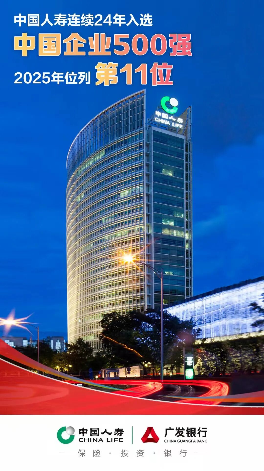9月15日,中国企业联合会、中国企业家协会发布2025中国企业500强榜单,中国人寿连续24年入选,排名第11位,较去年上升6位,位列行业首位。