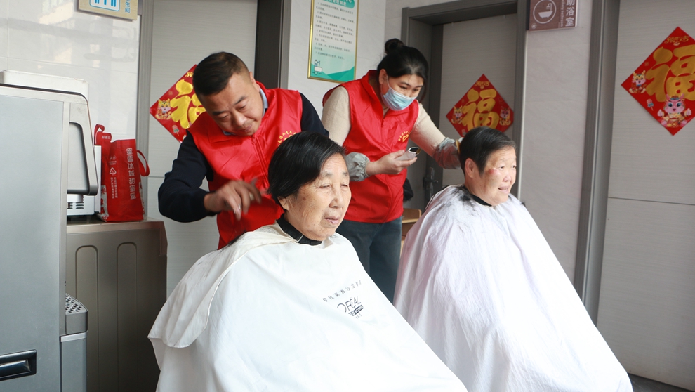 本次活动筹备周密,设置了理发、健康监测、修剪指甲、分享节日蛋糕等多个服务项目,既切实满足了老人们的生活需求,又极大地丰富了他们的精神生活。在理发区,志愿者手持推剪、梳子,动作轻柔而娴熟。他们一边细致地为老人修剪头发,一边微笑着询问“长度合不合适”?如同儿女般亲切。银发丝丝落下,老人们原本有些凌乱的发型变得清爽利落,镜中的面容也显得格外精神焕发。一位刚理完发的爷爷摸着新发型,乐得合不拢嘴:“小伙子手艺真好,感觉年轻了十岁!”