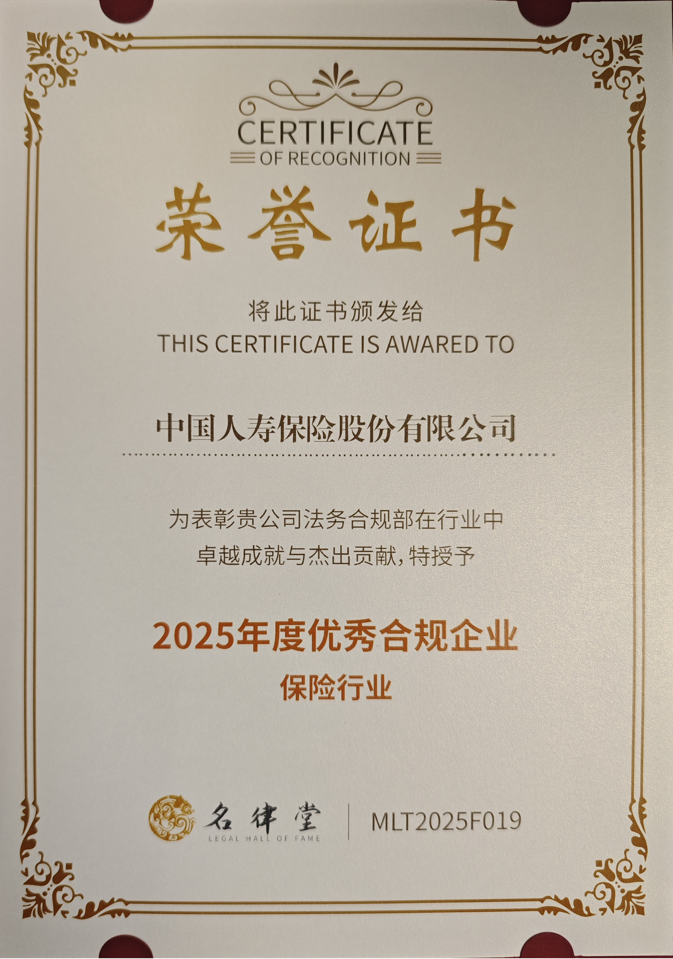 本次评选以“完善体系驾驭风险 前瞻视野洞见未来”为主题,旨在表彰具有规范合规管理流程与卓越合规风险管理能力的企业。这份荣誉的获得,是对中国人寿近年来高标准合规治理成效与高水平合规风险防控工作的生动见证。